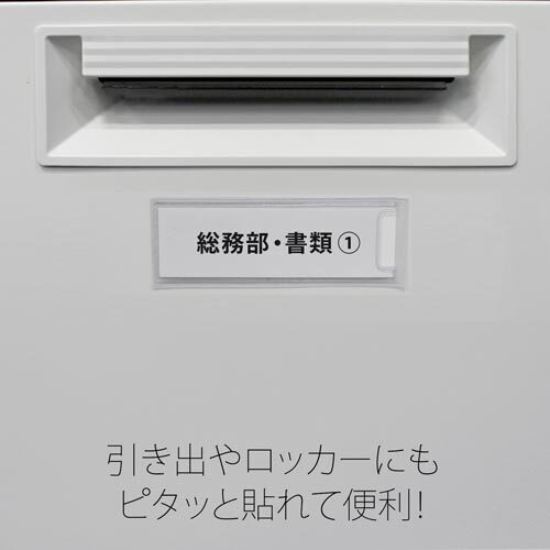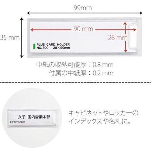 裏面にすぐ貼れる接着剤付。●寸法/幅99×高さ35mm●材質/ポリ塩化ビニル(PVC)(無移行性加工)●中紙サイズ/90×28mm●単位/1箱(100枚入)【返品に関するご注意】※この商品はお取り寄せ品のため、お客様のご都合による返品はお受けできません。