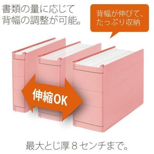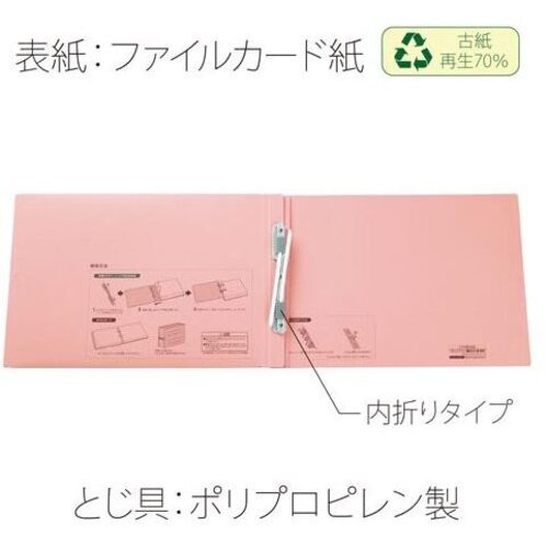 ●サイズ/A5ヨコ●寸法/縦155mm×横220mm×背幅18から98mm●表紙厚/約0.47mm●カラー/ピンク●材質/表紙:ファイルカード紙、とじ具:PP●穴数/2穴●最大収容枚数/約800枚●単位(入数)/1冊