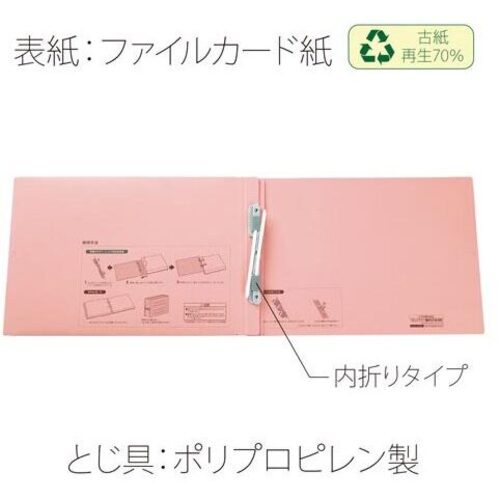 ●サイズ/A4ヨコ●寸法/縦215mm×横307mm×背幅18から98mm●表紙厚/約0.47mm●カラー/ピンク●材質/表紙:ファイルカード紙、とじ具:PP●穴数/2穴●最大収容枚数/約800枚●単位(入数)/1冊