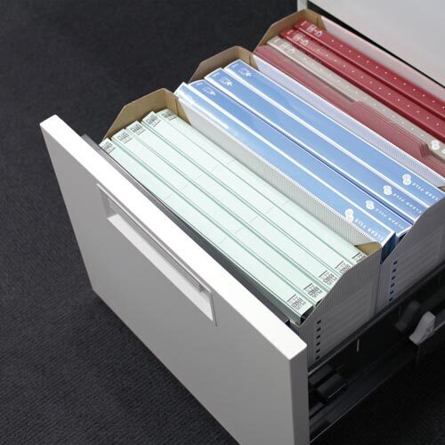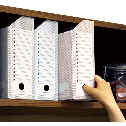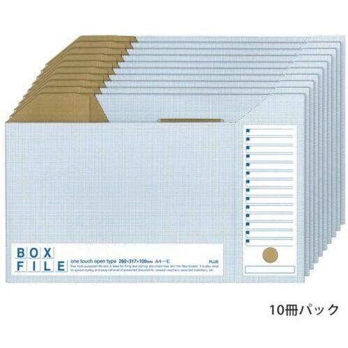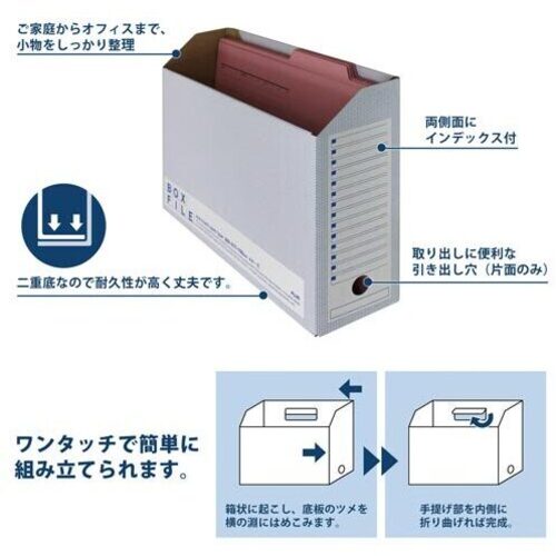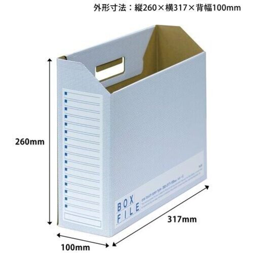 ●サイズ/A4ヨコ●寸法/縦260mm×横317mm×背幅100mm●カラー/ブルー●仕様/ワンタッチ組立●材質/段ボール●単位(入数)/1パック(10冊入り)