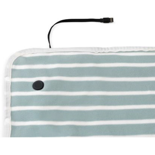 電源オンですぐに温かくなるヒートブランケットです。パソコンのUSBポートやモバイルバッテリーからの給電ができます。端子の接続部分を含め、すべて洗濯可能です。モバイルバッテリーは別売です。●寸法/約幅1000×奥行700×高さ10mm●カラー/ボーダー●入力電圧/5V●入力電流/2A●待機電力/0.7W●消費電力/10W●給電ケーブル/電源コードの長さ/1200mm、入力ポート/USBType-A●コントロ-ラー(温度調節)/4段階●保証期間/1年間●単位/1個 【ご注意事項】※ペースメーカーなどの医療機器を使用している方は、主治医にご相談の上、指示に従ってください。【返品に関するご注意】※開封後はお客様のご都合による返品はお受けできません。