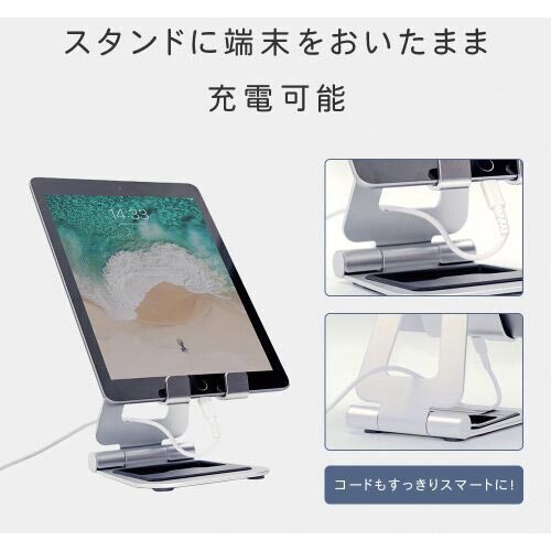 スタンドに載せたまま充電角度調整できるワイドアルミスタンドスマートホン/タブレット対応●寸法/約117(W)×140(D)×150(H)mm※折り畳み時約117(W)×140(D)×150(H)mm※展開時●質量/約322g●材質/アルミニウム、シリコン、ABS●カラー/シルバー●保証期間/1年間●単位/1個 【返品に関するご注意】※開封後はお客様のご都合による返品はお受けできません。