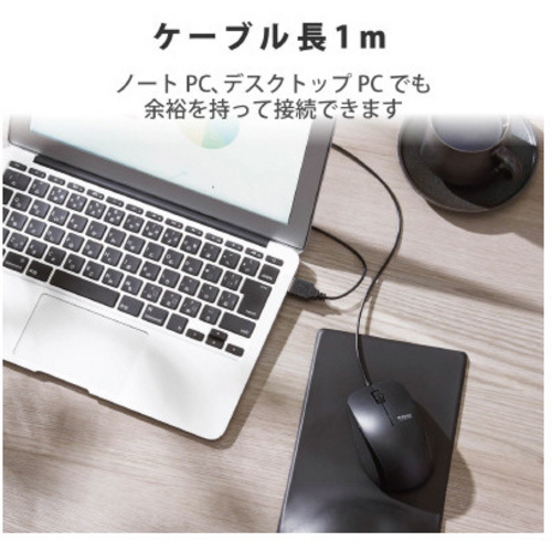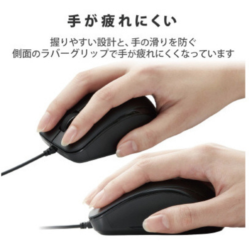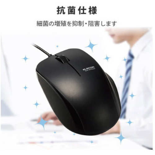 手に心地良くなじむ”手にぴた”設計のため、疲れにくく、握りやすい有線マウス。安心の抗菌仕様。●サイズ/Mサイズ●カラー/ブラック●付属品/ユーザーズマニュアル●保証期間/6カ月●対応OS/Windows10、WindowsRT8.1、Windows8.1、Windows7、macOSMojave(10.14)ーmacOSBigSur(11.1)●インターフェイス/USB●コネクタ形状/USB(A)オス●分解能/2000カウント●読取り方式/光学センサー方式●ボタン数/3個●ホイール数/1個●定格電圧/5V●寸法/幅65.5mm×奥行き98.4mm×高さ39.6mm●ケーブル長/約1m●質量/約68.1g●単位/1個 【返品に関するご注意】※開封後はお客様のご都合による返品はお受けできません。