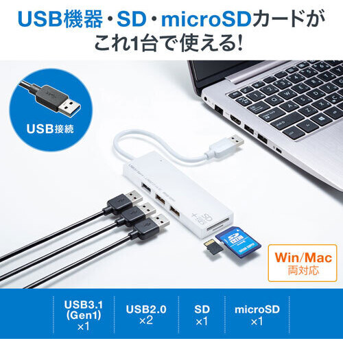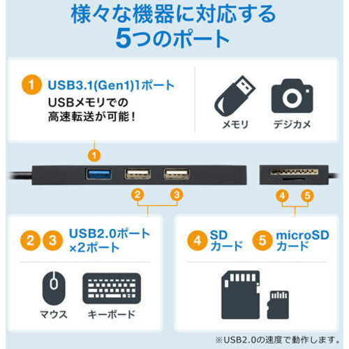 ●USB規格/USB仕様Ver3.2Gen1(USB3.1/3.0)準拠(USBVer2.0/1.1上位互換)●ダウンストリームポート数/3●アップストリームポート数/1●最大通信速度/5000Mbps●電源/バスパワー●対応OS/Windows11、10、8.1、8、7、macOS11、macOS10.12~10.15、MacOSX10.6.5~10.11、ChromeOS【ご注意事項】※こちらの商品は返品不可商品となります。※商品仕様につきましては、メーカーHPにてご確認ください。※仕入先直送品のため、在庫状況により上記お届け目安にてお届けできない場合がございます。※詳細納期をご確認されたい場合は、0120-812-069までご連絡ください。(お問い合わせ受付時間)月曜日~金曜日9時から18時30分(祝日を除く)