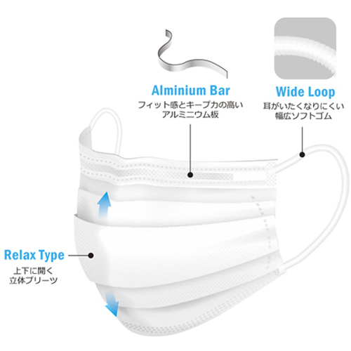 ●2個からご注文可能な商品です。●飛沫に強い3層構造●BFE≧98%、PFE≧98%(0.1μm)●ΔP<4.0●口元が立体構造なので呼吸がしやすい●耳ひもが幅広イヤーループで耳が痛くなりにくい●ノーズピースにアルミ板を使用しているためフィット感があります●Sサイズ●ポリプロピレン不織布3層●ノーズピース:アルミニウム板●耳ひも:ポリエステル●入数:1箱(50枚入)●サイズ:89×165mm●箱サイズ:18.7×9.8×10cm●カラー:ピンク【ご注意事項】※こちらの商品は返品不可商品となります。※商品仕様につきましては、参考情報ページにてご確認ください。※仕入先直送品のため、在庫状況により上記お届け目安にてお届けできない場合がございます。※詳細納期をご確認されたい場合は、0120-812-069までご連絡ください。(お問い合わせ受付時間)月曜日~金曜日9時から18時30分(祝日を除く)