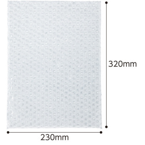 長3サイズの袋状の緩衝材。規格封筒にセットするだけで、捨てる時も分別できるクッション封筒に●寸法/幅230×深さ320mm●材質/ポリエチレン●カラー/透明●空気粒サイズ(1粒)/直径約10×高さ約3.5mm●構造/2層●タイプ/袋状●目安サイズ/角2封筒サイズ●包装寸法/幅230×奥行320×高さ110mm●単位/1パック(30枚入)