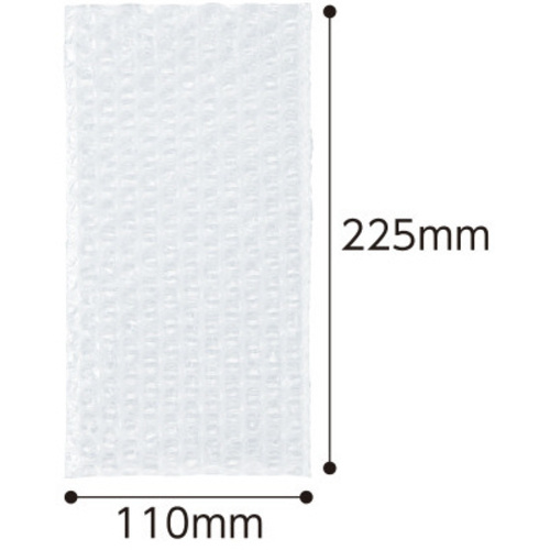 長3サイズの袋状の緩衝材。規格封筒にセットするだけで、捨てる時も分別できるクッション封筒に●寸法/幅110×深さ225mm●材質/ポリエチレン●カラー/透明●空気粒サイズ(1粒)/直径約10×高さ約3.5mm●構造/2層●タイプ/袋状●目安サイズ/長3封筒サイズ●包装寸法/幅110×奥行225×高さ110mm●単位/1セット(30枚入×10) 【ご注意事項】※1セット単位でお申し込みください。