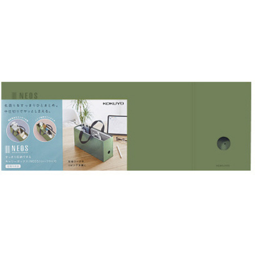 机周りをすっきりひとまとめ。中仕切りでサッとしまえる。●サイズ/A4 1/2●カラー/オリーブグリーン●寸法/仕切り内(幅×奥行×高さmm):94×94×91●寸法(幅×奥行×高さmm)/外寸法:328×102×157、内寸法:326×95×156●材質/本体:再生PP、取っ手:ポリエステル●耐荷重/約49N(約5kgf)●単位/1個 【ご注意事項】※本製品は、収容物を保証する設計にはなっておりません。落下などによる電子機器などの破損・故障・傷については責任を負いかねますのでご了承ください。※素材の特性上、摩擦や水濡れにより色移りする場合があります。※有機系や揮発性の溶剤が付着しますと反り・変色するおそれがあります。※平らでない場所に置いたり机の端などに置かないでください。※容量・耐荷重を超えるものは、変形・破損の原因になりますので無理に詰め込まないでください。※ペットボトルなどを入れる際、水滴をよくふき取って収容ください。※上端部を超える高さのものを入れる際は転倒にご注意ください。