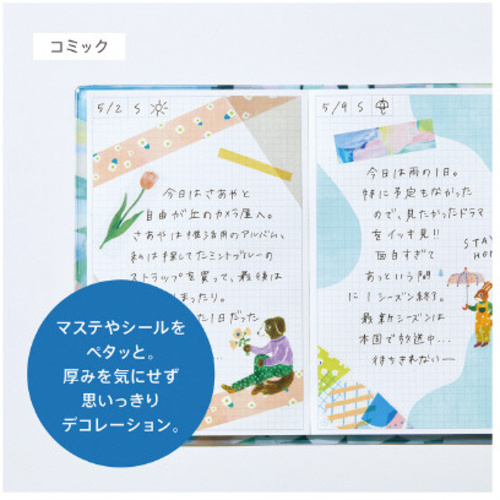 手帳のように使えるノート●サイズ/コミックサイズ●柄/パッチワーク●寸法/117×8×180mm●本体重量/140g●主な素材/紙●単位/1冊 【ご注意事項】※直接日光の当たる場所や、高温多湿の場所での使用または保管はしないでください