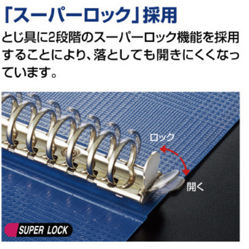 360度折り返して使える。デザイン性の高いシボ加工表紙で傷が目立ちにくい。豊富なカラーバリエーションで用途に合わせて選べます。●サイズ/A4タテ●背幅/26mm●カラー/ブルー●材質/表紙・ポケット:再生PP●中紙有無/中紙なし●穴数/30穴●表紙厚/約0.9mm●ポケット厚/0.05mm●ポケット枚数/15枚●最大収容ポケット枚数/60枚●寸法(タテ×ヨコmm)/312×261●とじ具種別/金属とじ具●ポケット表面/エンボス仕上げ●背紙種別/背紙なし●リング内径/17mm●表紙材質/PP表紙(半透明・シボ加工)●単位/1セット●単位/1セット(5冊入)【ご注意事項】※この製品は『リベットはずし機』(フ-RVT1)で表紙ととじ具を分別することができます。