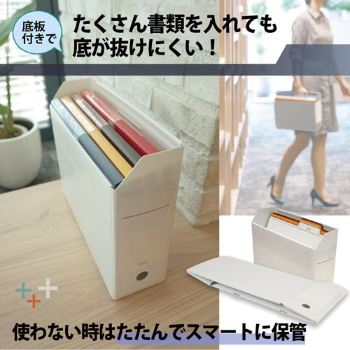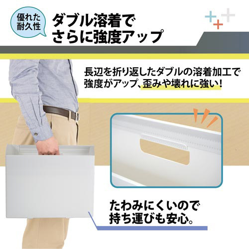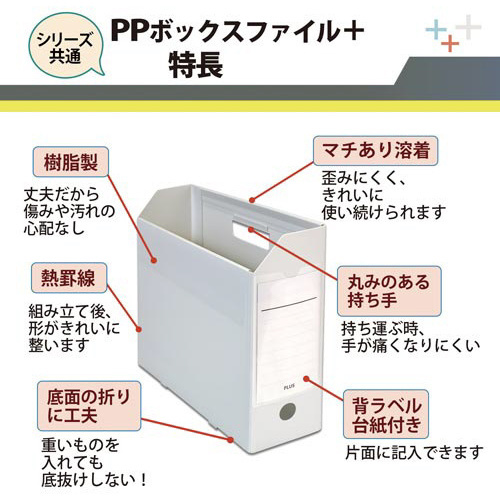 書類の保管から持ち運びまで。丈夫な樹脂製ボックスファイル。●サイズ/A4横●カラー/ホワイト●寸法/縦263×横319×背幅100mm●材質/再生PP●付属品/ラベル(片面)●仕様/底板付●単位/1冊