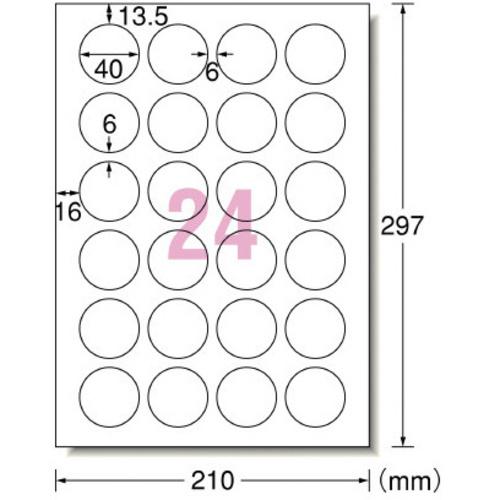 レーザープリンタ(LBP)で印刷できる、水に強い耐水紙素材のラベルシールです。ラベル表面と側面に耐水性がありトナーがにじみにくい。自由に切って使えます。パッケージ、ラッピングシール作成に。●種別/耐水紙ラベル●サイズ/A4●対応プリンタ/レーザー(カラー・モノクロ)、コピー(カラー・モノクロ)●カラー/白無地●紙厚/0.15mm(ラベル本体):0.10mm●材質/耐水紙+レーザー専用塗工●坪量/145g/平方m●ラベル総厚/0.10mm●面付け/24面 丸型●1片寸法/60mm丸●ISO白色度/約86%●単位/1冊(20枚入) 【ご注意事項】※ご使用の機種に対応する坪量をご確認のうえ、ご利用ください。※インターネットでエーワンのホームページにアクセスしていただければ印刷ソフト〈ラベル屋さん〉を無償でご利用いただけます。http://www.labelyasan.com/
