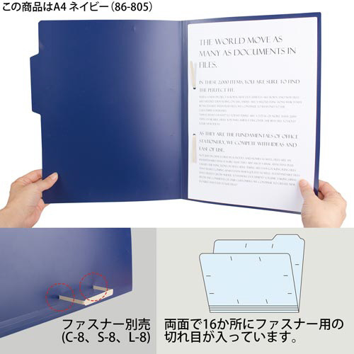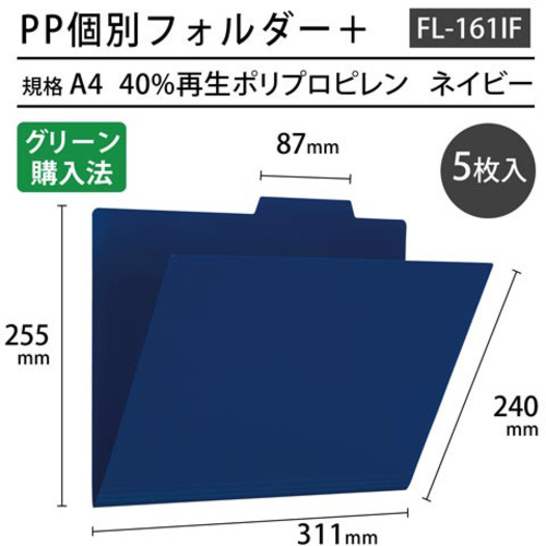 丈夫な樹脂製の個別フォルダー。よく使う書類の管理におすすめ。●サイズ/A4横●カラー/ネイビー●寸法/縦(山の高さ)240(山の高さ+15)mm×横311mm●材質/再生PP●ファスナー用スリット/1面あたり4ヶ所●その他/フォルダーラベル付●単位/1パック(5枚入)
