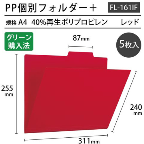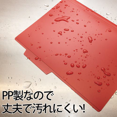 丈夫な樹脂製の個別フォルダー。よく使う書類の管理におすすめ。●サイズ/A4横●カラー/レッド●寸法/縦(山の高さ)240(山の高さ+15)mm×横311mm●材質/再生PP●ファスナー用スリット/1面あたり4ヶ所●その他/フォルダーラベル付●単位/1パック(5枚入)