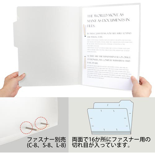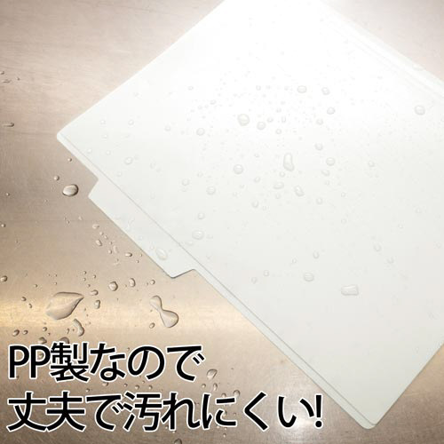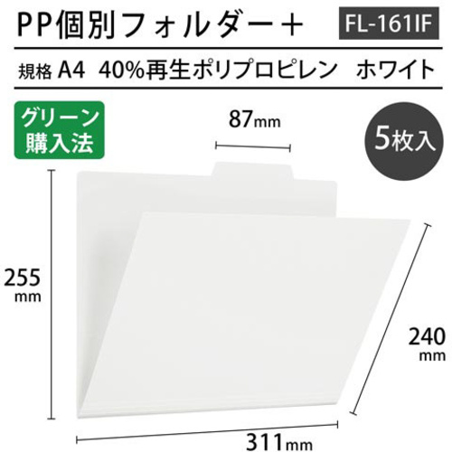 丈夫な樹脂製の個別フォルダー。よく使う書類の管理におすすめ。●サイズ/A4横●カラー/ホワイト●寸法/縦(山の高さ)240(山の高さ+15)mm×横311mm●材質/再生PP●ファスナー用スリット/1面あたり4ヶ所●その他/フォルダーラベル付●単位/1パック(5枚入)