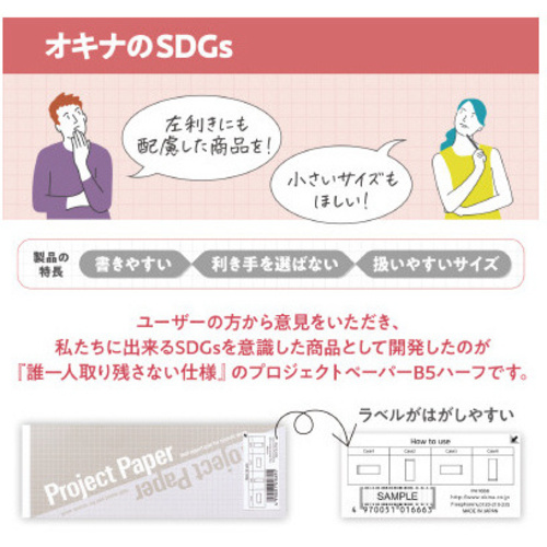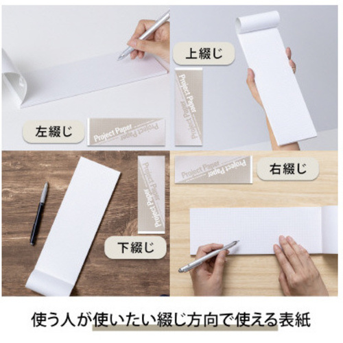 使う人が使いたい綴じ方向で使える表紙デザイン。フリーアドレスやリモートワークなど限られたスペースでも使いやすい、プロジェクトペーパーB5ハーフサイズ。●サイズ/B5ハーフ●枚数/50枚●寸法(タテ×ヨコ)/91×257mm●罫内容/5mm方眼●表紙カラー/ムーンストーン●方眼カラー/ムーンストーン●単位/1冊 【ご注意事項】※色を楽しんでいただくことを想定している商品のため罫線色によりコピーに写ります。