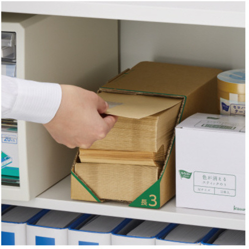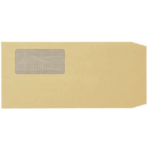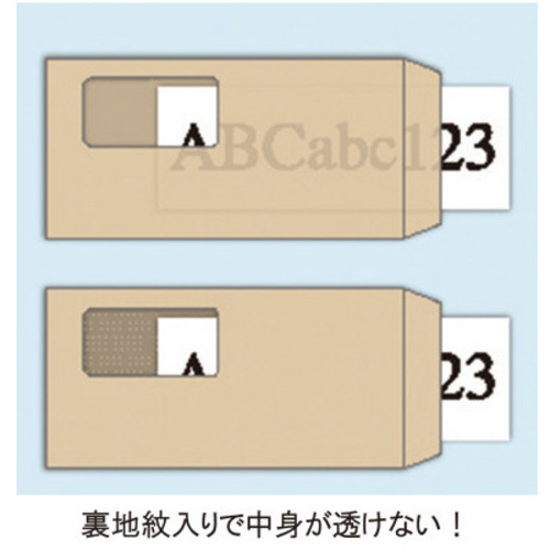 【中身の封筒が取り出しやすい箱入り。パックからの面倒な出し入れが不要に。】窓付きの透けないクラフト封筒。内側に地紋印刷を施し中身が見えにくい仕様。個人情報を保護でき、請求書や見積り書などを送る際に!●サイズ/長形3号●貼り合わせ方式/センター●テープ・のり/なし●テープ有無/テープなし●坪量/70g/平方メートル●カラー/クラフト●透過度/◎●材質/古紙パルプ配合紙、窓:グラシン紙●郵便番号枠/〒枠なし●仕様/裏地紋入、グラファン窓●寸法/タテ235×ヨコ120mm●古紙パルプ配合率/40%●単位/1箱(300枚入) 【ご注意事項】※窓付き封筒をプリンタや印刷機に通さないでください。窓部分が溶けたり、はがれたりする恐れがあります。※メーカーの都合によりパッケージが予告なく変更される場合があります。