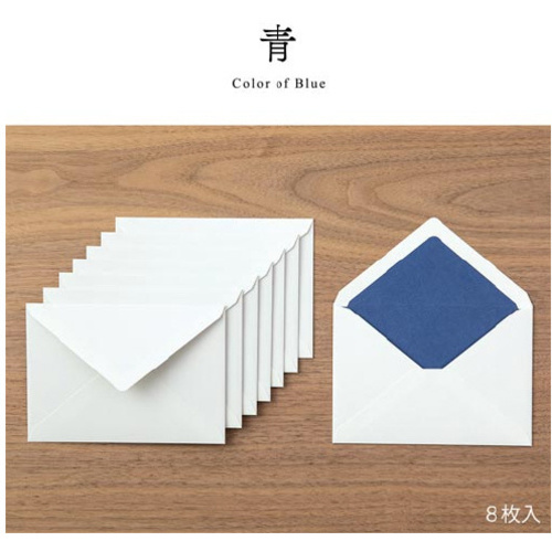 気分や情景を色に込めて贈る封筒です。その日の気分や、伝えたい情景から連想する色を選んで手紙を書けます。カジュアルシーン・ビジネスシーンどちらの場面でもお使いいただけるアイテムになっています。●寸法/パッケージ/タテ120×ヨコ168×奥行5mm本体/タテ114×ヨコ162mm●仕様/8枚入〔PP袋入〕●単位/1パック
