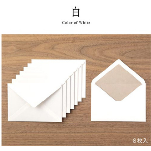 気分や情景を色に込めて贈る封筒です。その日の気分、伝えたい情景から連想する色を選んで手紙を書けます。カジュアルシーン・ビジネスシーンどちらの場面でもお使いいただけるアイテムになっています。●寸法/パッケージ/タテ120×ヨコ168×奥行5mm本体/タテ114×ヨコ162mm●仕様/8枚入〔PP袋入〕●単位/1パック
