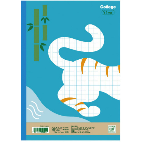 まっしろなどうぶつたちといっしょに学ぼう!学びの楽しさを感じる、カレッジアニマル学習帳。ベルマーク運動参加商品です。●サイズ/セミB5●種別/漢字●カラー/青●製本様式/糸綴じ●罫/91字詰●枚数/30枚●紙質/上質紙●罫内容/91字詰中心リーダー入り●表紙色/トラ●紙厚/70g●規格/セミB5●寸法/タテ252×ヨコ179mm●単位/1冊 【ご注意事項】※掲載商品の色は実物と少々異なる場合がございます。【返品に関するご注意】※この商品はお取り寄せ品のため、お客様のご都合による返品はお受けできません。