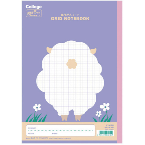 まっしろなどうぶつたちといっしょに学ぼう!学びの楽しさを感じる、カレッジアニマル学習帳。ベルマーク運動参加商品です。●サイズ/セミB5●種別/方眼ノート●カラー/紫●製本様式/糸綴じ●罫/5ミリ方眼罫●枚数/30枚●紙質/上質紙●罫内容/5ミリ方眼罫中心リーダー入り●表紙色/ヒツジ●紙厚/70g●規格/セミB5●寸法/タテ252×ヨコ179mm●単位/1冊 【ご注意事項】※掲載商品の色は実物と少々異なる場合がございます。【返品に関するご注意】※この商品はお取り寄せ品のため、お客様のご都合による返品はお受けできません。