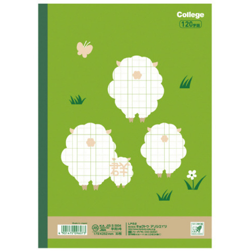 まっしろなどうぶつたちといっしょに学ぼう!学びの楽しさを感じる、カレッジアニマル学習帳。ベルマーク運動参加商品です。●サイズ/セミB5●種別/漢字●カラー/緑●製本様式/糸綴じ●罫/120字詰●枚数/30枚●紙質/上質紙●罫内容/120字詰中心リーダー入り●表紙色/ヒツジ●紙厚/70g●規格/セミB5●寸法/タテ252×ヨコ179mm●単位/1冊 【ご注意事項】※掲載商品の色は実物と少々異なる場合がございます。【返品に関するご注意】※この商品はお取り寄せ品のため、お客様のご都合による返品はお受けできません。