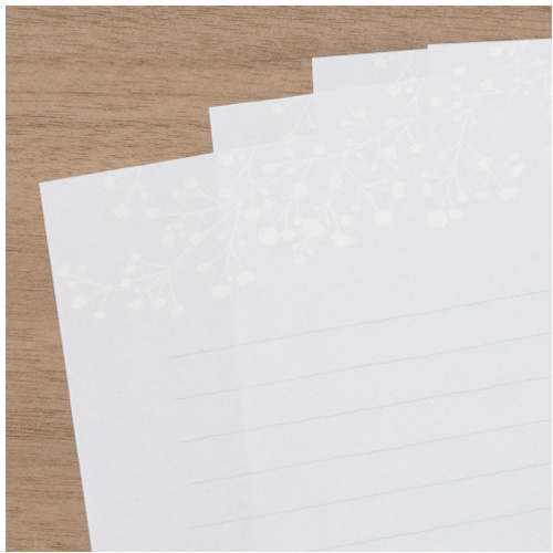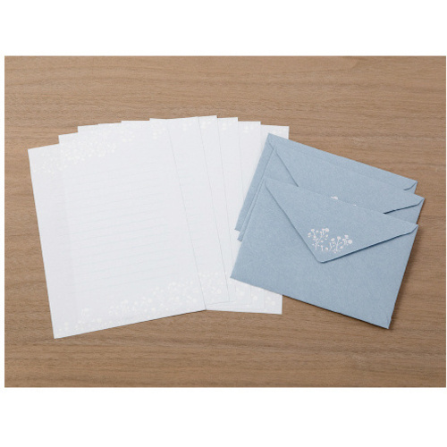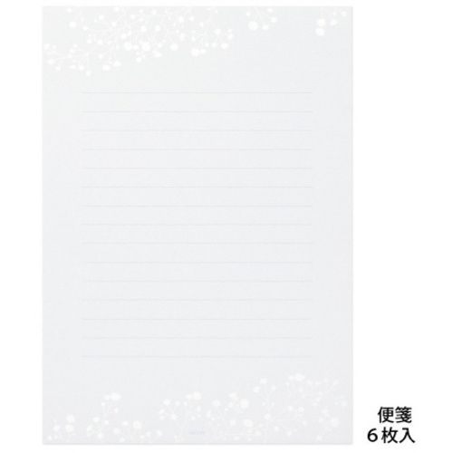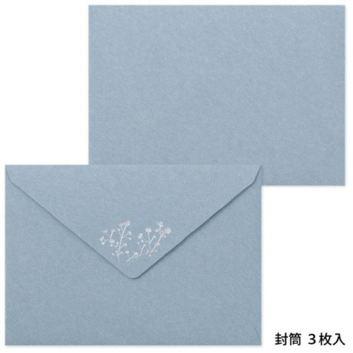 優しい草花で送る少し大人なレターセット。封筒のフラップ部分にあしらわれた箔のデザインが、手紙が届いた時の高揚感を演出します。記念日や誕生日などちょっとしたお祝いごとのお手紙にぴったりです。●寸法/パッケージ/H218×W168×D5mm便箋/H210×W148mm封筒/H114×W162mm●枚数/便箋/6枚入り封筒/3枚入●仕様/PP袋入●単位/1パック