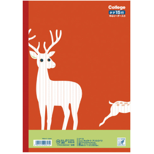 まっしろなどうぶつたちといっしょに学ぼう!学びの楽しさを感じる、カレッジアニマル学習帳。ベルマーク運動参加商品です。●サイズ/セミB5●種別/国語●カラー/赤●製本様式/糸綴じ●罫/縦罫15行●枚数/30枚●紙質/上質紙●罫内容/縦罫15行中心リーダー入り●表紙色/シカ●紙厚/70g●規格/セミB5●寸法/タテ252×ヨコ179mm●単位/1冊 【ご注意事項】※掲載商品の色は実物と少々異なる場合がございます。【返品に関するご注意】※この商品はお取り寄せ品のため、お客様のご都合による返品はお受けできません。