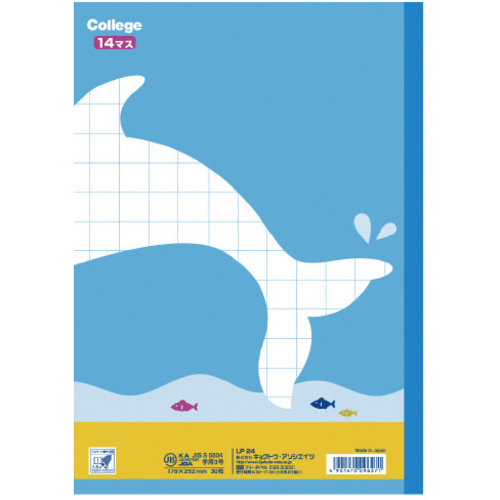 まっしろなどうぶつたちといっしょに学ぼう!学びの楽しさを感じる、カレッジアニマル学習帳。ベルマーク運動参加商品です。●サイズ/セミB5●種別/算数●カラー/水色●製本様式/糸綴じ●罫/14マス●枚数/30枚●紙質/上質紙●罫内容/14マス●表紙色/イルカ●紙厚/70g●規格/セミB5●寸法/タテ252×ヨコ179mm●単位/1冊 【ご注意事項】※掲載商品の色は実物と少々異なる場合がございます。【返品に関するご注意】※この商品はお取り寄せ品のため、お客様のご都合による返品はお受けできません。