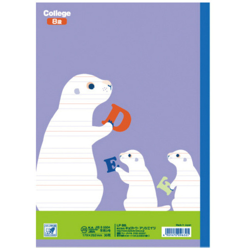 まっしろなどうぶつたちといっしょに学ぼう!学びの楽しさを感じる、カレッジアニマル学習帳。ベルマーク運動参加商品です。●サイズ/セミB5●種別/英語●カラー/紫●製本様式/糸綴じ●罫/英習8段●枚数/30枚●紙質/上質紙●罫内容/英習8段●表紙色/プレーリードッグ●紙厚/70g●規格/セミB5●寸法/タテ252×ヨコ179mm●単位/1冊 【ご注意事項】※掲載商品の色は実物と少々異なる場合がございます。【返品に関するご注意】※この商品はお取り寄せ品のため、お客様のご都合による返品はお受けできません。