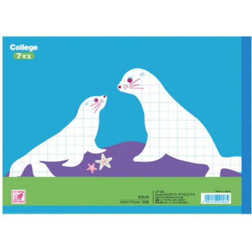 まっしろなどうぶつたちといっしょに学ぼう!学びの楽しさを感じる、カレッジアニマル学習帳。ベルマーク運動参加商品です。●サイズ/セミB5●種別/横開算数●カラー/水色●製本様式/糸綴じ●罫/7マス●枚数/30枚●紙質/上質紙●罫内容/7マス中心リーダー入り●表紙色/アシカ●紙厚/70g●規格/セミB5●寸法/タテ179×ヨコ252mm●単位/1冊 【ご注意事項】※掲載商品の色は実物と少々異なる場合がございます。【返品に関するご注意】※この商品はお取り寄せ品のため、お客様のご都合による返品はお受けできません。