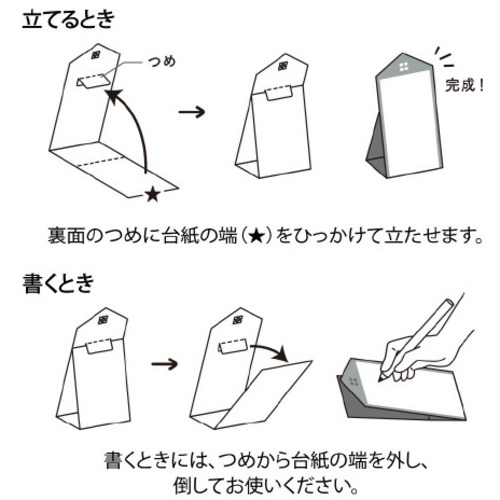 ワンタッチで立てられて、簡単に折り畳めるので、書き込みしやすいメモです。ゆるっとしたかわいいイラストが入っています。食卓などに置いて家族のコミュニケーションに使えます。たっぷり使える80枚。●寸法/タテ170×ヨコ84mm●枚数/80枚●単位/1冊 【返品に関するご注意】※この商品はお取り寄せ品のため、お客様のご都合による返品はお受けできません。