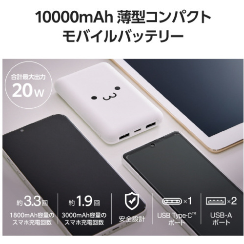 USBPowerDelivery規格に準拠し合計出力20Wの10000mAhモバイルバッテリーです。高出力なのに約184gと軽量でコンパクト、毎日持ち歩けるサイズです。●対応機種/iPhoneおよびUSB端子で充電するスマートフォン、タブレット、他小型電子機器●コネクター形状(電源入力側)/USBType-C(TM)(USB-C(TM))ポート●定格入力電圧/5V/9V/12V●定格入力電流/3A/2A/1.5A●コネクター形状(電源出力側)/USBType-C(USB-C)ポート×1、USB-Aポート×2●単位/1個 【ご注意事項】※初期不良は交換対応にてご対応させていただきます。【返品に関するご注意】※開封後はお客様のご都合による返品はお受けできません。