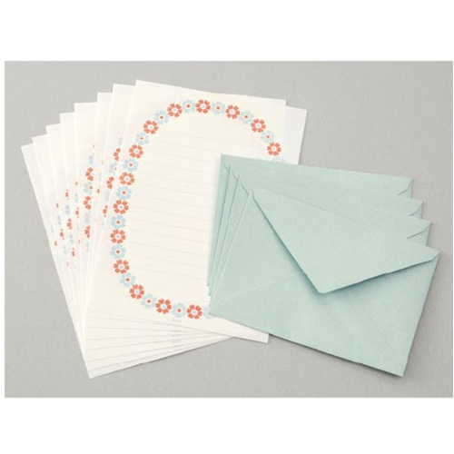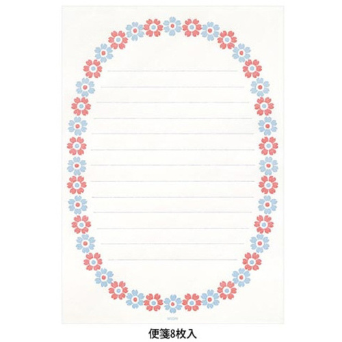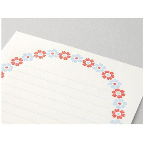 大人の女性のための上品で上質な活版印刷のレターセットです。活版印刷ならではの繊細な手触りと美しい陰影をお楽しみいただけます。鮮やかな赤と水色の組み合わせた花フレーム柄は、様々なシーンで活躍します。●寸法/パッケージ/タテ222×ヨコ170×奥行5mm便箋/タテ210×ヨコ148mm封筒/タテ114×ヨコ162mm●仕様/便箋/8枚入封筒/4枚入PP袋入●罫/横罫●単位/1パック