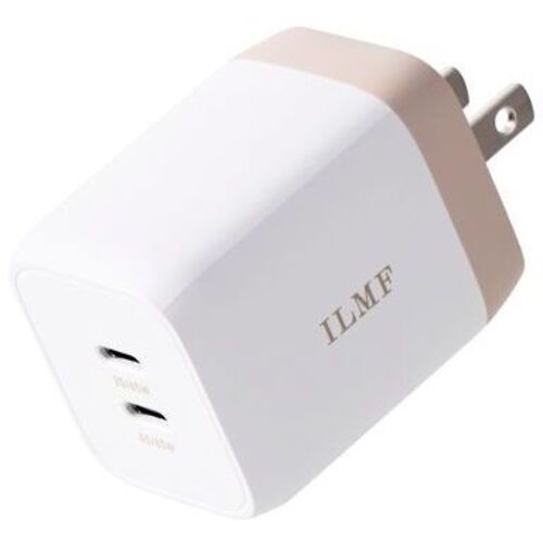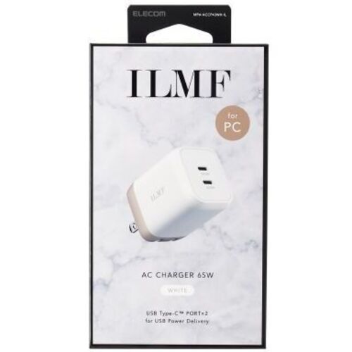 USB Type-Cポートを2ポート搭載し、スマートフォンとノートパソコンを2台同時に充電可能。●仕事道具にもさりげなく個性を取り入れて、毎日をもっと私らしく。I love myselfをキーワードに、自分自身をもっと愛するためのオフィスアイテムを提案するILMFです。●対応機種/各USB Type-CポートからUSB Power Delivery (65W)及びオプション規格であるPPS(Programmable Power Supply)の規格内で充電が可能な機器。2ポート同時接続時も合計最大65Wまでの出力で充電、給電可能な機器とその組み合わせ。●コネクター形状:USB Type-Cポート×2●定格入力電圧:AC100~240V、50/60Hz●定格入力電流:1.5A●外形寸法:幅約52mm×厚み約38mm×高さ約40.5mm●重量:約106g●カラー:ホワイト●コンセントプラグ仕様:90度スイング構造●使用温度:0℃~25℃●法令:◇PSE 特定電気用品●保証期間/1年間●定格出力電力1:単独接続時:USB Type-C1/USB Type-C2ポート最大出力65W、PPS最大出力65W、QC最大出力18W●定格出力電力2:2ポート同時接続時:合計最大出力65W、USB Type-C1ポート最大出力45W、PPS最大出力45W、QC最大出力18W、USB Type-C2ポート最大出力20W、PPS最大出力20W、QC最大出力18W【ご注意事項】※こちらの商品は返品不可商品となります。※商品仕様につきましては、メーカーHPにてご確認ください。※仕入先直送品のため、在庫状況により上記お届け目安にてお届けできない場合がございます。※詳細納期をご確認されたい場合は、0120-812-069までご連絡ください。(お問い合わせ受付時間)月曜日~金曜日9時から18時30分(祝日を除く)