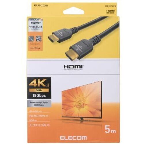 ●長さ/5m●色/ブラック●端子/HDMIプラグ(タイプA・19ピン)-HDMIプラグ(タイプA・19ピン)●規格/イーサネット対応プレミアムハイスピードHDMI(R)ケーブル認証品【ご注意事項】※こちらの商品は返品不可商品となります。※商品仕様につきましては、メーカーHPにてご確認ください。※仕入先直送品のため、在庫状況により上記お届け目安にてお届けできない場合がございます。※詳細納期をご確認されたい場合は、0120-812-069までご連絡ください。(お問い合わせ受付時間)月曜日~金曜日9時から18時30分(祝日を除く)