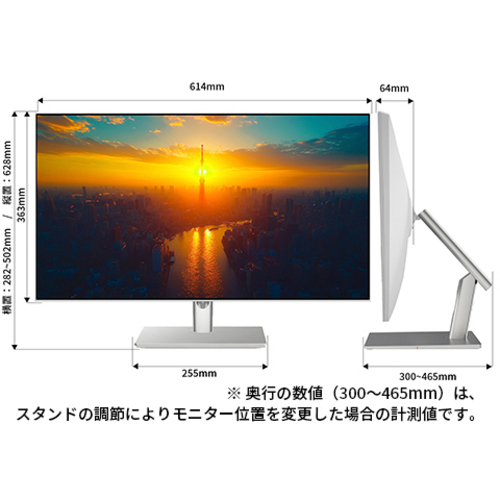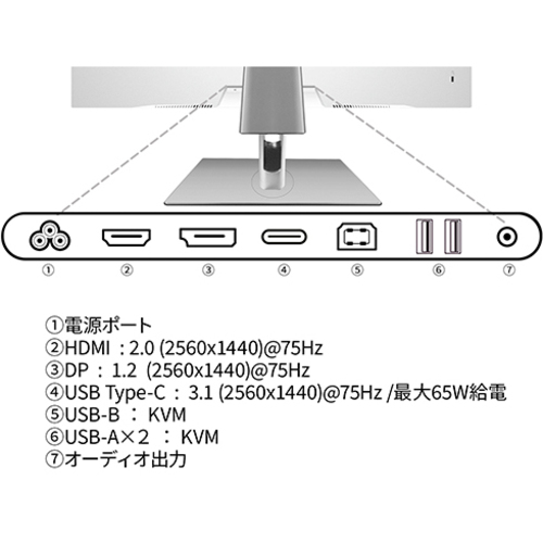 ●保証期間/1年●サイズ/27型●液晶パネル方式/IPS(AHVA)●表示色/1677万色sRGB100%、DCI-P398%●ピッチ/約0.233mm●解像度/2560×1440●輝度/400cd/m2●コントラスト比/1000:1●視野角/H:178oV:178o●入力信号/デジタル●入力端子/DP×1、HDMI×1、Type-C×1●ケーブル/HDMIケーブル、Type-Cケーブル、USBB-Aケーブル、電源ケーブル●スピーカー/あり「2W×2」●本体サイズ(H×W×D)/高横282-502mm縦628mmx幅横614mm縦363mmx奥行300-465mm●本体重量/約7.1Kg●本体カラー/ホワイト●電源/AC100-240V50、60Hz●最大消費電力/110W【ご注意事項】※こちらの商品は返品不可商品となります。※商品仕様につきましては、メーカーHPにてご確認ください。※仕入先直送品のため、在庫状況により上記お届け目安にてお届けできない場合がございます。※詳細納期をご確認されたい場合は、0120-812-069までご連絡ください。(お問い合わせ受付時間)月曜日~金曜日9時から18時30分(祝日を除く)