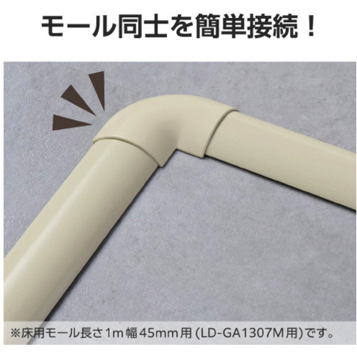 基台付きで、カバーはワゴンモールの蓋の上からかぶせるだけ。床配線の際のケーブルを保護し、すっきりと収納できる床用モール(LD-GA1307M)用のジョイントパーツ(曲ガリ)。●材質/PVC●カラー/ベージュ●対応製品/LD-GA1307M●サイズ/W69.2mm×D69.2mm×H12.7mm●単位/1個 【ご注意事項】※初期不良は交換対応にてご対応させていただきます。【返品に関するご注意】※開封後はお客様のご都合による返品はお受けできません。