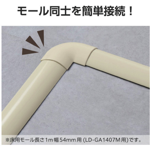 基台付きで、カバーはワゴンモールの蓋の上からかぶせるだけ。床配線の際のケーブルを保護し、すっきりと収納できる床用モール(LD-GA1407M)用のジョイントパーツ(曲ガリ)。●材質/PVC●カラー/ベージュ●対応製品/LD-GA1407M●サイズ/W85.5mm×D85.5mm×H13.6mm●単位/1個 【ご注意事項】※初期不良は交換対応にてご対応させていただきます。【返品に関するご注意】※開封後はお客様のご都合による返品はお受けできません。