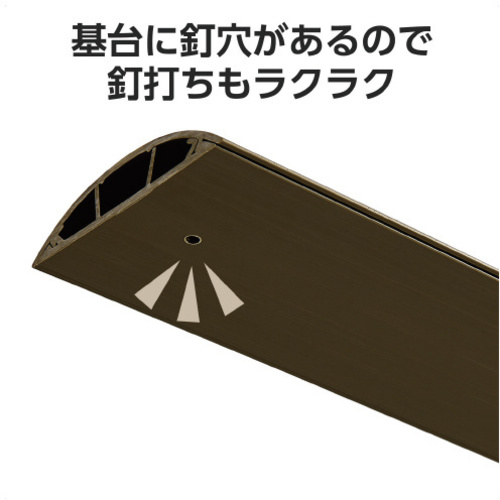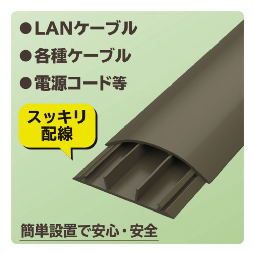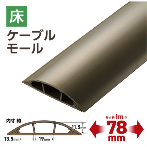ゆるやかなR形状で、足がつまずく心配を軽減。床配線の際のケーブルを保護し、すっきりと収納できる長さ1m幅78mmの床用モール。●長さ/1m●カラー/ブラウン●対応ケーブル/センター/Φ10mmの通信線・ケーブル2条、VVF(1.6×3C)2条、VVF(2.0×2C)3条、VVF(2.6×2C)2条、VVF(2.6×3C)1条、LANケーブル(UTP0.5×4P)6条●対応ケーブル/両サイド/Φ9mm以下の通信線・ケーブル各1条、VVF(2.0×3C)各1条、VVF(2.6×2C)各1条、LANケーブル(UTP0.5×4P)2条●外寸幅/78mm●単位/1個 【ご注意事項】※初期不良は交換対応にてご対応させていただきます。【返品に関するご注意】※開封後はお客様のご都合による返品はお受けできません。