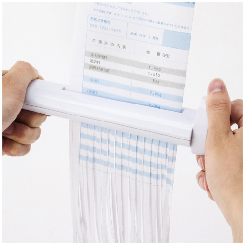 場所を取らないコンパクトシュレッダー。握って回して簡単裁断。●質量/165g●単位/1セット(10個入) 【ご注意事項】※故障の原因となりますので裁断枚数を厳守願います
