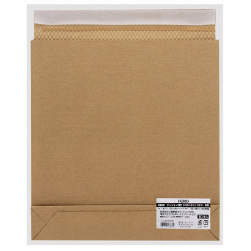 中身を衝撃から守る、内側に紙製の緩衝材が付いた宅配袋です。ベロテープ付き。●サイズ/幅300×マチ60×高320+ベロ50mm●材質/未晒クラフト紙2層構造(80g+80g)●種別/宅配袋●生産国/中国●カラー/未晒●単位/1箱(10枚×5) 【返品に関するご注意】※開封後はお客様のご都合による返品はお受けできません。