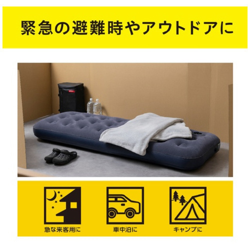 防災用品やレジャー用品として使用できる簡易エアーベッドです。フットポンプ内臓なので、外付けポンプを準備する必要がありません。足で繰り返し踏むだけで、最短2分程で簡単に膨らませることができます。●セット内容/(ベッド本体・修理シール)×8●材質/ベッド:PVC、フットポンプ:ABS樹脂、PVC、シリコーン、ステンレス、修理シール:PVC●質量/約730g(1個あたり))●寸法/約幅720×奥行1900×高さ220mm(1個あたり)●全体耐荷重/約90kg(1個あたり)●単位/8個 【ご注意事項】※乳幼児またはお体の不自由な方は私用しないでください。