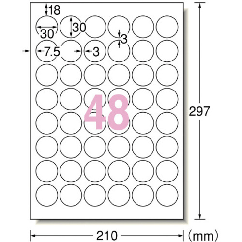 インクジェットプリンタ(IJP)で印刷できる、なんと水に強い紙素材(光沢紙)のラベルシールです。紙素材なのに水に濡れてもインクがにじみにくい特殊加工を施しています。パッケージ、ラッピングシール作成に。●種別/超耐水光沢紙●サイズ/A4●対応プリンタ/インクジェット(染料・顔料)●カラー/白無地●紙厚/0.22mm(ラベル本体):0.11mm●材質/合成紙+インクジェット専用塗工●坪量/193g/平方m●ラベル総厚/0.11mm●単位(入数)/1冊(10枚入)●面付け/48面 丸型●1片寸法/30mm丸●単位/1冊(10枚入) 【ご注意事項】※ご使用の機種に対応する坪量をご確認のうえ、ご利用ください。※インターネットでエーワンのホームページにアクセスしていただければ印刷ソフト〈ラベル屋さん〉を無償でご利用いただけます。http://www.labelyasan.com/