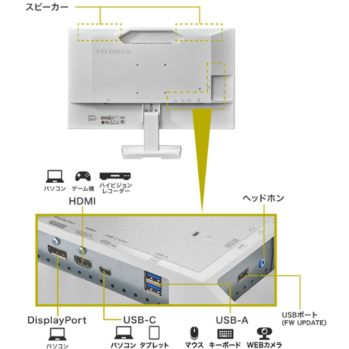 ●保証期間/5年●サイズ/27型●液晶パネル方式/ADS(IPS相当) ●表示色/1677万色●ピッチ/0.3114(H)×0.3114(V)mm●走査周波数(水平)/31.5-112.5●走査周波数(垂直)/59.9-100.0●解像度/HDTV(1920×1080)●輝度/250cd/m2●コントラスト比/1300:1●視野角/上下:178°左右:178°●入力信号/HDMI、DisplayPort、USBType-C●入力端子/HDMI、DisplayPort、USBType-C●ケーブル/電源コード(PSE適合品、約1.8m)、HDMIケーブル(約1.5m)、USBケーブル(C-CUSB5Gbps(USB3.2Gen1)約1.5m)●スピーカー/あり2W+2W(ステレオ)●本体サイズ(H×W×D)/(本体のみ):約454(H)×613(W)×235(D)mm※突起部除く●本体重量/5600g●本体カラー/ホワイト●電源/電源内蔵●最大消費電力/130W【ご注意事項】※こちらの商品は返品不可商品となります。※商品仕様につきましては、メーカーHPにてご確認ください。※仕入先直送品のため、在庫状況により上記お届け目安にてお届けできない場合がございます。※詳細納期をご確認されたい場合は、0120-812-069までご連絡ください。(お問い合わせ受付時間)月曜日~金曜日9時から18時30分(祝日を除く)