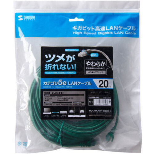 ●長さ/20m●結線/AWG26より線ツイストペアケーブル、ストレート全結線●色/グリーン●端子/RJ-45モールディングコネクタ付(ラッチカバー付き)●規格/エンハンスドカテゴリ5(1000BASE-T)、カテゴリ5(100BASE-TX)、カテゴリ3(10BASE-T)適合【ご注意事項】※こちらの商品は返品不可商品となります。※商品仕様につきましては、メーカーHPにてご確認ください。※仕入先直送品のため、在庫状況により上記お届け目安にてお届けできない場合がございます。※詳細納期をご確認されたい場合は、0120-812-069までご連絡ください。(お問い合わせ受付時間)月曜日~金曜日9時から18時30分(祝日を除く)