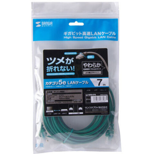 ●長さ/7m●結線/AWG26より線ツイストペアケーブル、ストレート全結線●色/グリーン●端子/RJ-45モールディングコネクタ付(ラッチカバー付き)●規格/エンハンスドカテゴリ5(1000BASE-T)、カテゴリ5(100BASE-TX)、カテゴリ3(10BASE-T)適合【ご注意事項】※こちらの商品は返品不可商品となります。※商品仕様につきましては、メーカーHPにてご確認ください。※仕入先直送品のため、在庫状況により上記お届け目安にてお届けできない場合がございます。※詳細納期をご確認されたい場合は、0120-812-069までご連絡ください。(お問い合わせ受付時間)月曜日~金曜日9時から18時30分(祝日を除く)