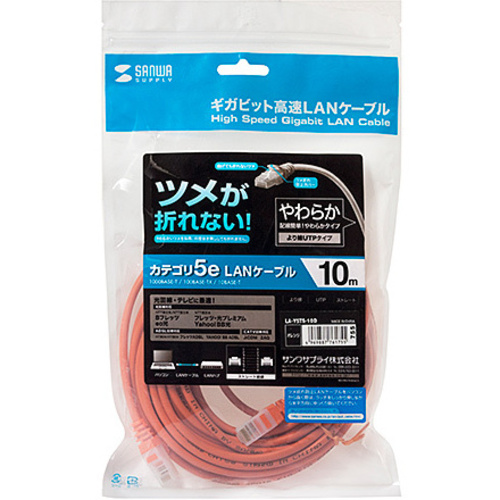●長さ/10m●結線/ストレート全結線●色/オレンジ●端子/RJ-45モールディングコネクタ付(ラッチカバー付き)●規格/エンハンスドカテゴリ5(1000BASE-T)、カテゴリ5(100BASE-TX)、カテゴリ3(10BASE-T)適合【ご注意事項】※こちらの商品は返品不可商品となります。※商品仕様につきましては、メーカーHPにてご確認ください。※仕入先直送品のため、在庫状況により上記お届け目安にてお届けできない場合がございます。※詳細納期をご確認されたい場合は、0120-812-069までご連絡ください。(お問い合わせ受付時間)月曜日~金曜日9時から18時30分(祝日を除く)