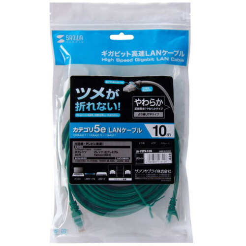 ●長さ/10m●結線/AWG26より線ツイストペアケーブル、ストレート全結線●色/グリーン●端子/RJ-45モールディングコネクタ付(ラッチカバー付き)●規格/エンハンスドカテゴリ5(1000BASE-T)、カテゴリ5(100BASE-TX)、カテゴリ3(10BASE-T)適合【ご注意事項】※こちらの商品は返品不可商品となります。※商品仕様につきましては、メーカーHPにてご確認ください。※仕入先直送品のため、在庫状況により上記お届け目安にてお届けできない場合がございます。※詳細納期をご確認されたい場合は、0120-812-069までご連絡ください。(お問い合わせ受付時間)月曜日~金曜日9時から18時30分(祝日を除く)