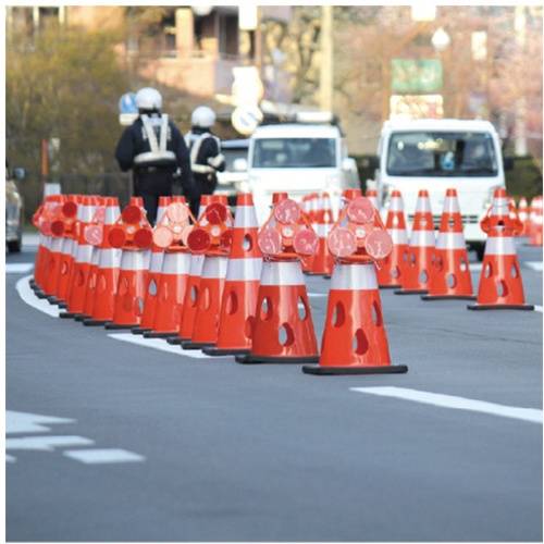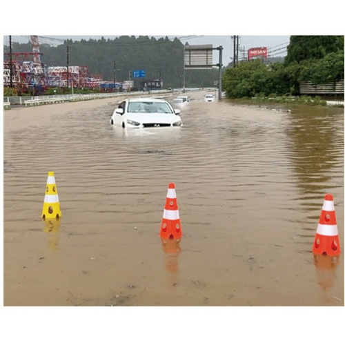 風の力を受け流し倒れにくい設置が可能、豪雨による冠水でも流されにくい、中を目視しやすいため不審物等の確認に有効、従来品と比べプラスチック材料を削減、柔軟性にすぐれていて割れにくい、特許取得済み●カラー/レッド●寸法/約幅360×高さ700mm/上部穴直径:40mm●材質/PVC●仕様/ウエイト一体型●重量/約3100g●単位/1個